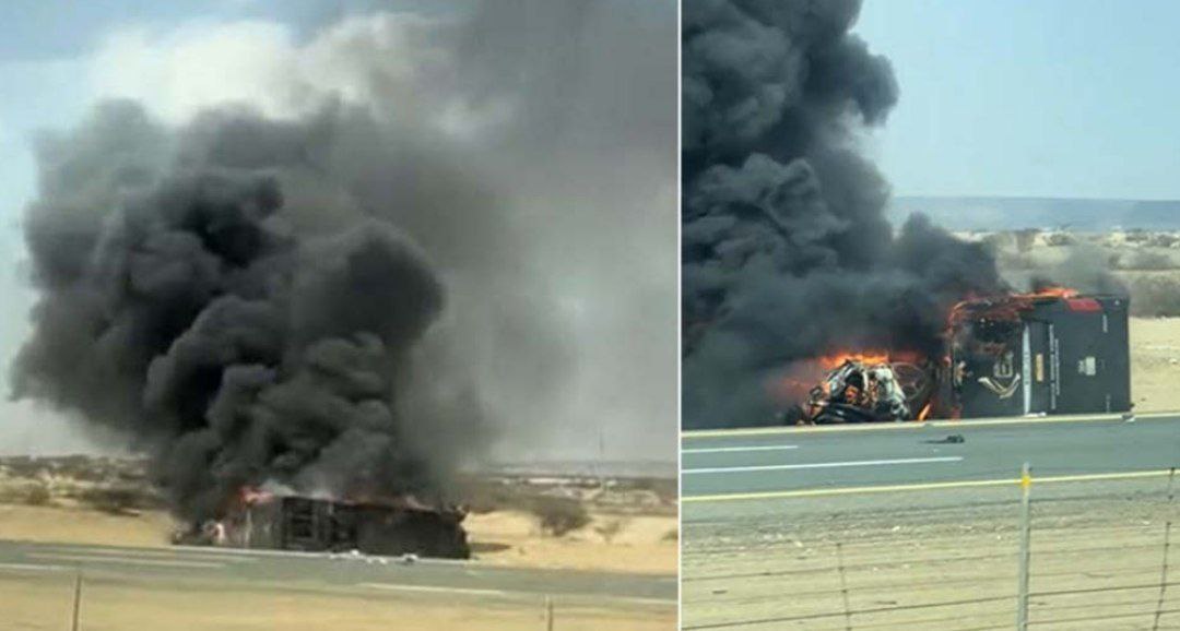 Kecelakaan maut bus jemaah umrah menyebabkan kendaraan yang ditumpang para WNI terbalik dan terbakar.
