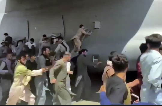 Di saat mereka bersiap untuk lepas landas itulah, ratusan warga Afghanistan tiba-tiba berlarian di landasan pacu dan mendekati C-17.