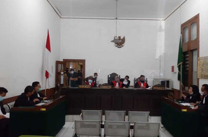 Tidak terima dengan putusan tersebut, peserta sidang menjadi beringas. Mereka melemparkan botol minum dan meneriaki hakim dengan umpatan.
