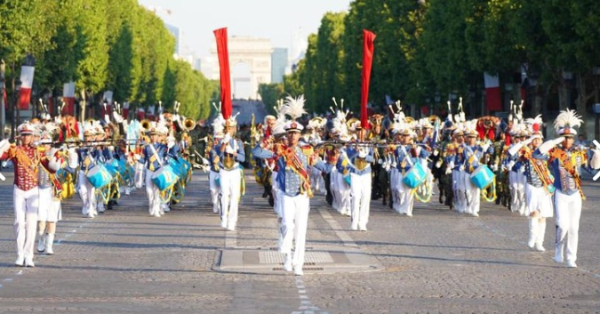 Diiringi lagu nasional “Maju Tak Gentar” yang dimainkan oleh drumben Taruna “Gita Abdi Negara”, suasana khidmat dan membanggakan menyelimuti Champs-Élysées.