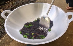 ”Dalam pembuatan proses pembuatan bedda lotong ada beberapa tahap, yaitu tahap penyangraian. Pada tahap ini menghabiskan waktu selama kurang lebih 1 jam. Yang kedua adalah tahap penepung. Pada tahap ini beras ketan yang selesai disangrai dihaluskan sehingga beras ketan haluss dan menghasilkan bulir scrub. Kemudian dilanjutkan dengan tahap pencampuran bahan. Semua bahan yang sudah siap (kunyit,asam jawa, dan rempah rempah pilihan dicampur kemudian di mix, red),” ujar Hana.