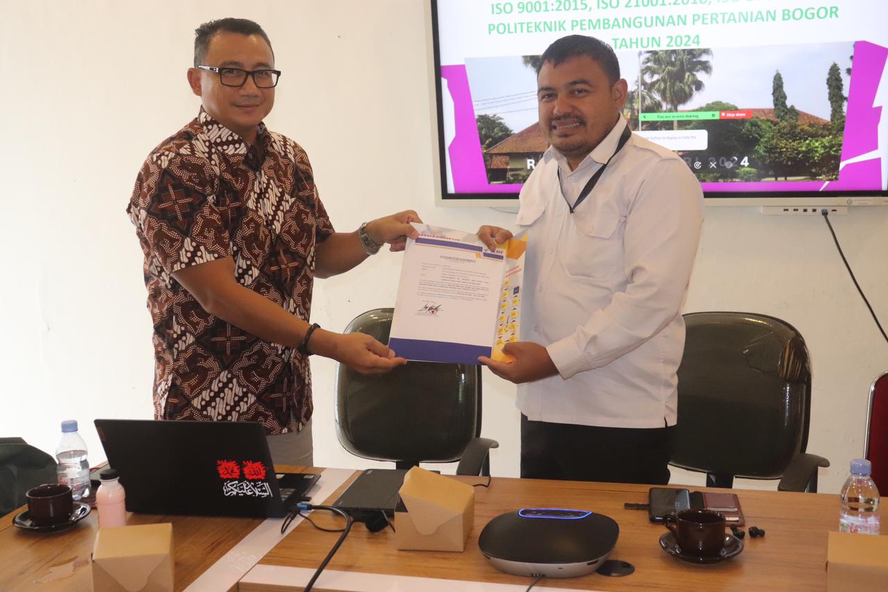 Polbangtan Bogor bekerjasama dengan Mitra Sejati Fazahara (MSF), untuk audit surveillance kali ini. Mendatangkan Ivar Kusradi selaku auditor, Polbangtan Bogor berkomitmen untuk memastikan bahwa manajemen yang dilakukan telah memenuhi prosedur yang terdokumentasi ke dalam standar ISO.