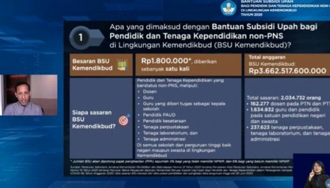 Menteri Pendidikan dan Kebudayaan Nadiem Makarim, menyebut bantuan ini diberikan untuk membantu para ujung tombak pendidikan tersebut yang terdampak adanya pandemi covid-19.