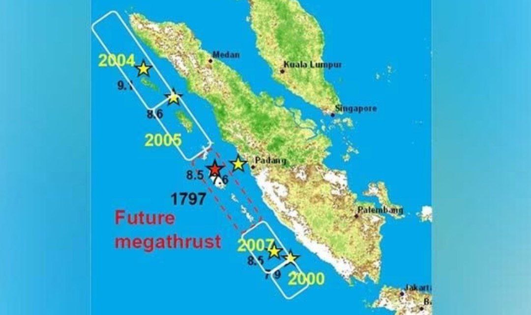 Zona megathrust segmen Mentawai-Siberut di barat Sumatera, sementara segmen Selat Sunda sebagian terbentang di Selatan Jawa-Bali.