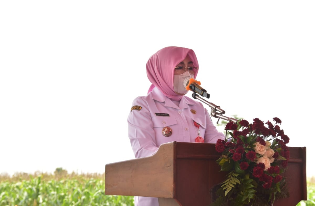 Sumarni, Bupati Grobogan saat memberikan sambutannya pada acara Panen Jagung Nusantara