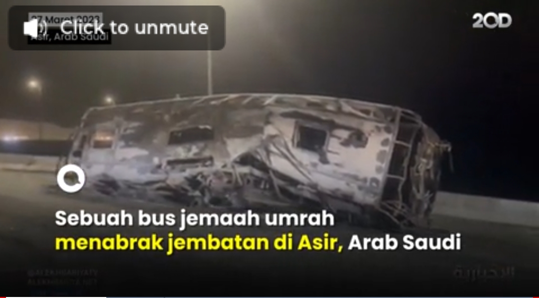 ARAB SAUDI – WARTA BOGOR – sebuah bus rombongan jamaah umroh kecelakaan di Arab Saudi. Bus terbakar setelah menabrak jembatan, dikabarkan 20 orang tewas dan puluhan lainnya luka-luka.