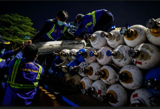Singapura: 200 ventilator, 256 tabung oksigen kosong ukuran 50 liter, 250 tabung oksigen terisi ukuran 50 liter, 600 oksigen konsentrator. Singapura melalui Kementerian Pertahanan (Ministry of Defence/Mindef): 75.000 masker bedah, 25.000 masker N95, 2.000 sarung tangan operasi, 1.000 topi operasi, 1.000 baju APD, 20 ventilator, dan 250 tabung oksigen t erisi ukuran 50 liter.