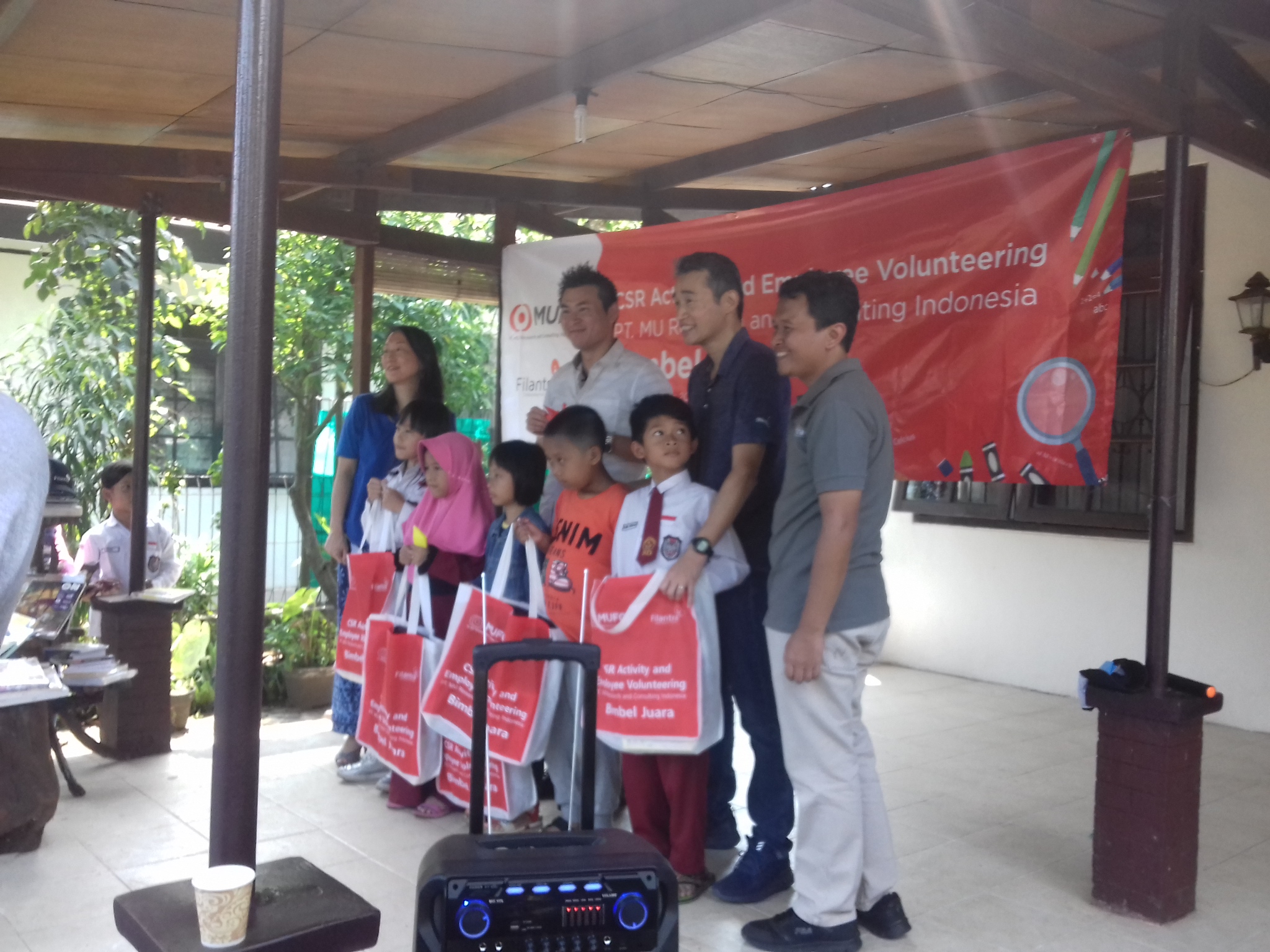 Sebelum acara ini ditutup, mereka membagikan hadiah untuk para pemenang lomba mewarnai dan mendistribusikan seratus paket perlengkapan sekolah.