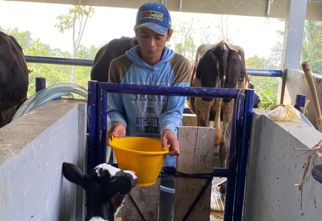 “Bantuan tersebut berupa kandang, 10 ekor sapi dara bunting, konsentrat, bibit HMT, dan peralatan”, ujarnya.