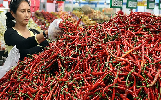 Sementara harga cabai rawit merah mengalami kenaikan dari sebelumnya Rp41.600 per kg, menjadi Rp44.600 per kg.