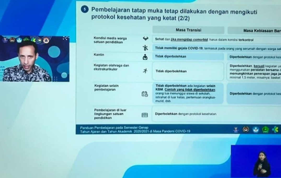 Hanya saja, menurut Nadiem Makarim, pembelajaran tatap muka diperbolehkan, tetapi tidak diwajibkan.
