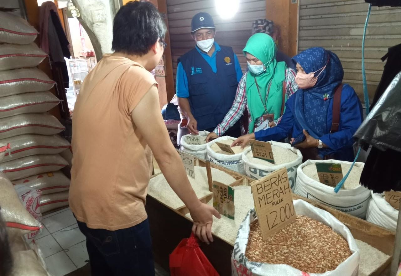 Direktur Polbangtan Bogor bersama Kepala Bidang Dinas Ketahanan Pangan Kabupaten Bogor memastikan harga dan stok pangan di Pasar Cibinong dalam kondisi aman.
