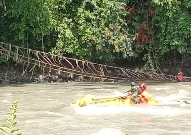 Kelebihan beban diduga menjadi penyebab jembatan gantung tersebut terputus. Saat kejadian, sebanyak 12 orang dalam rombongan tersebut sama-sama melintas.