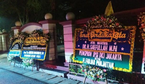 Karangan bunga terus berdatangan dengan diantar mobil pikap. Karangan bunga memenuhi bagian depan rumah sehingga diletakkan di samping kediaman Sekda DKI Saefullah bersebrangan dengan lapangan.