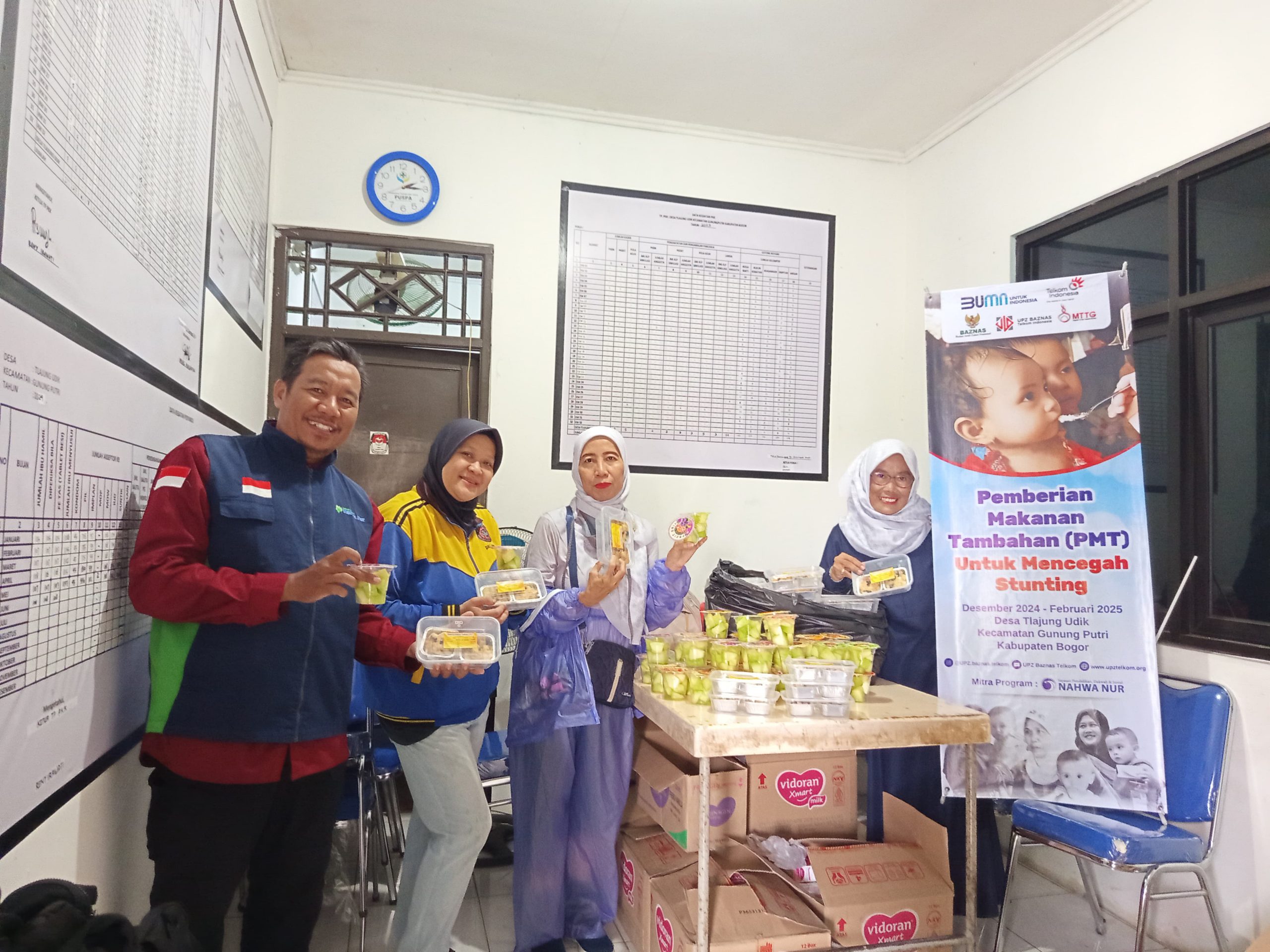 BOGOR-WARTA BOGOR– Unit Pengumpul Zakat (UPZ) BAZNAS Telkom bersama Pemerintah Kabupaten (Pemkab) Bogor, melalui Badan Perencanaan Pembangunan Daerah Penelitian dan Pengembangan (Bappedalitbang), meluncurkan program Pemberian Makanan Tambahan (PMT) untuk mencegah stunting pada balita di Desa Tlajung Udik, Kecamatan Gunung Putri. Langkah ini bertujuan memberikan dukungan nutrisi yang optimal bagi balita guna mengurangi risiko stunting.