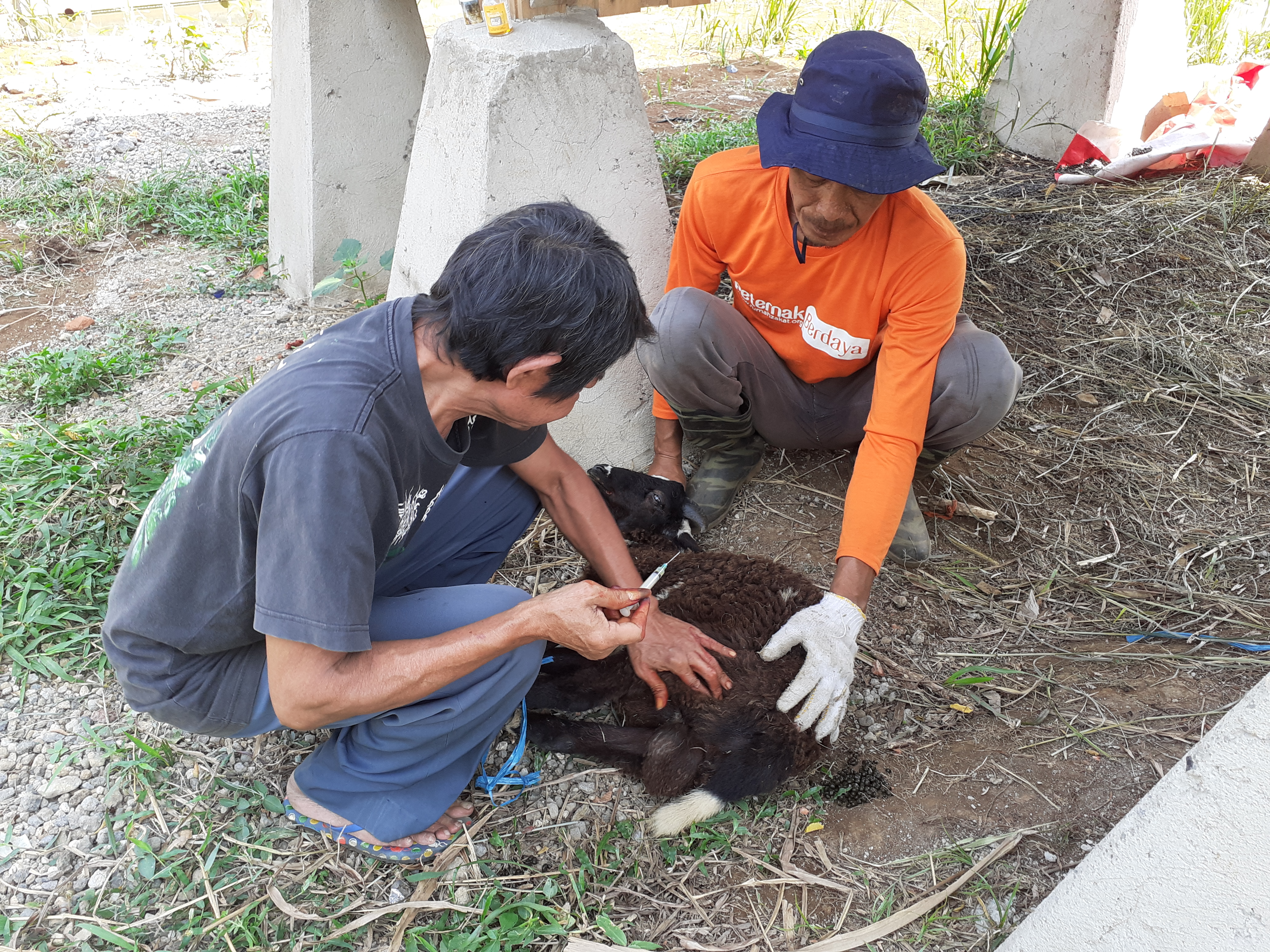 “Saya dulu bekerja membantu dokter hewan di IPB, awalnya hanya melihat dan bantu-bantu pegang helwan ternak ketika diobati, setelah itu saya semakin mengetahui cara mengobati hewan ketika sakit termasuk obat-obatnya” Kata Pak Maman Suparman di Markaz Domba Pamoyanan, Rabu (25-09-2019).
