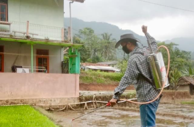 Menurut Fauzi saat ini sudah masuk tahap pembibitan. Namun ia melihat banyak sekali hama padi di lahan benih. Akhirnya ia pun berinisiatif menyemprot pestisida pada benih padi tersebut.