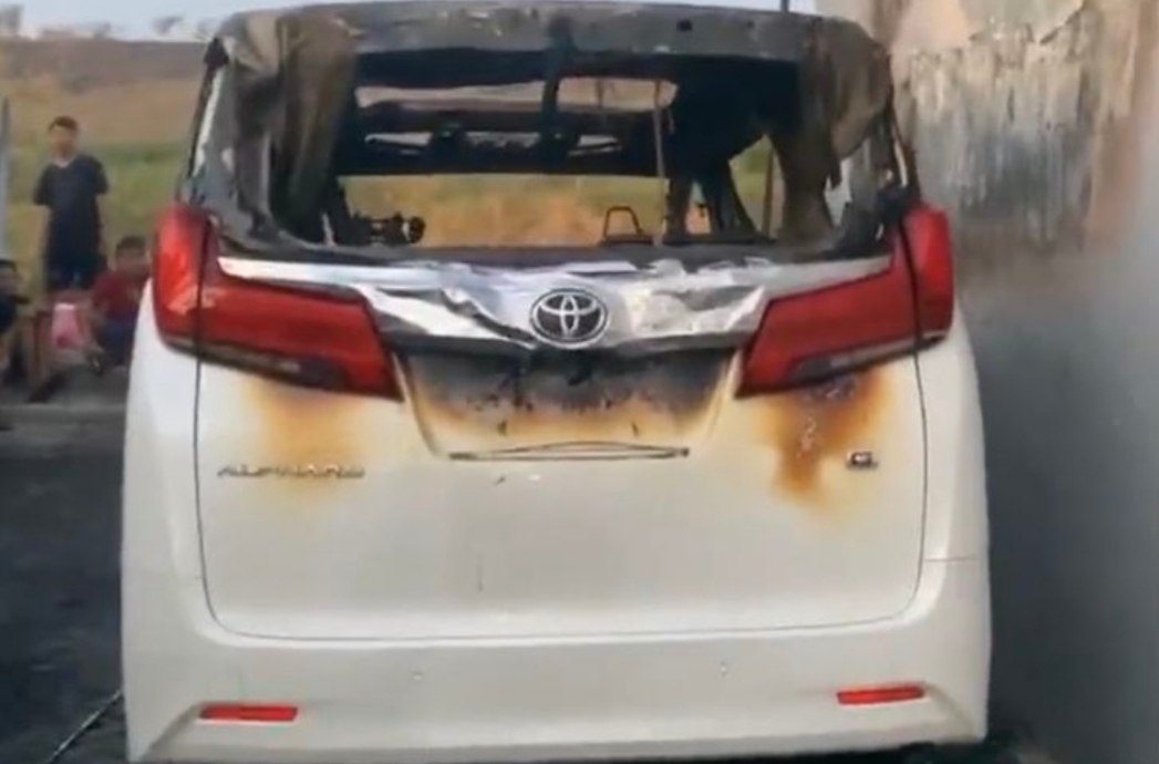 Kemudian, dia membakar mobil mewah milik Via Vallen yang diparkir di samping rumah.