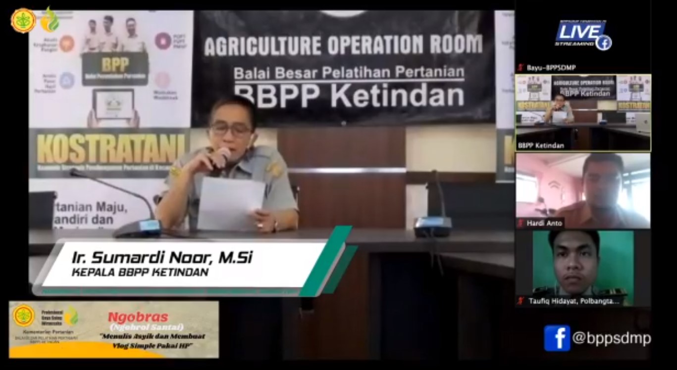 KETINDAN-WARTABOGOR.id –Balai Besar Pelatihan Pertanian (BBPP) Ketindan sukses menggelar Ngobras (Ngobrol Santai) Menulis Asyik dan Membuat Vlog Simple Pakai Hp, hari ini (4/05) melalui aplikasi Zoom. Acara dibuka secara resmi oleh Kepala BBPP Ketindan Sumardi Noor.