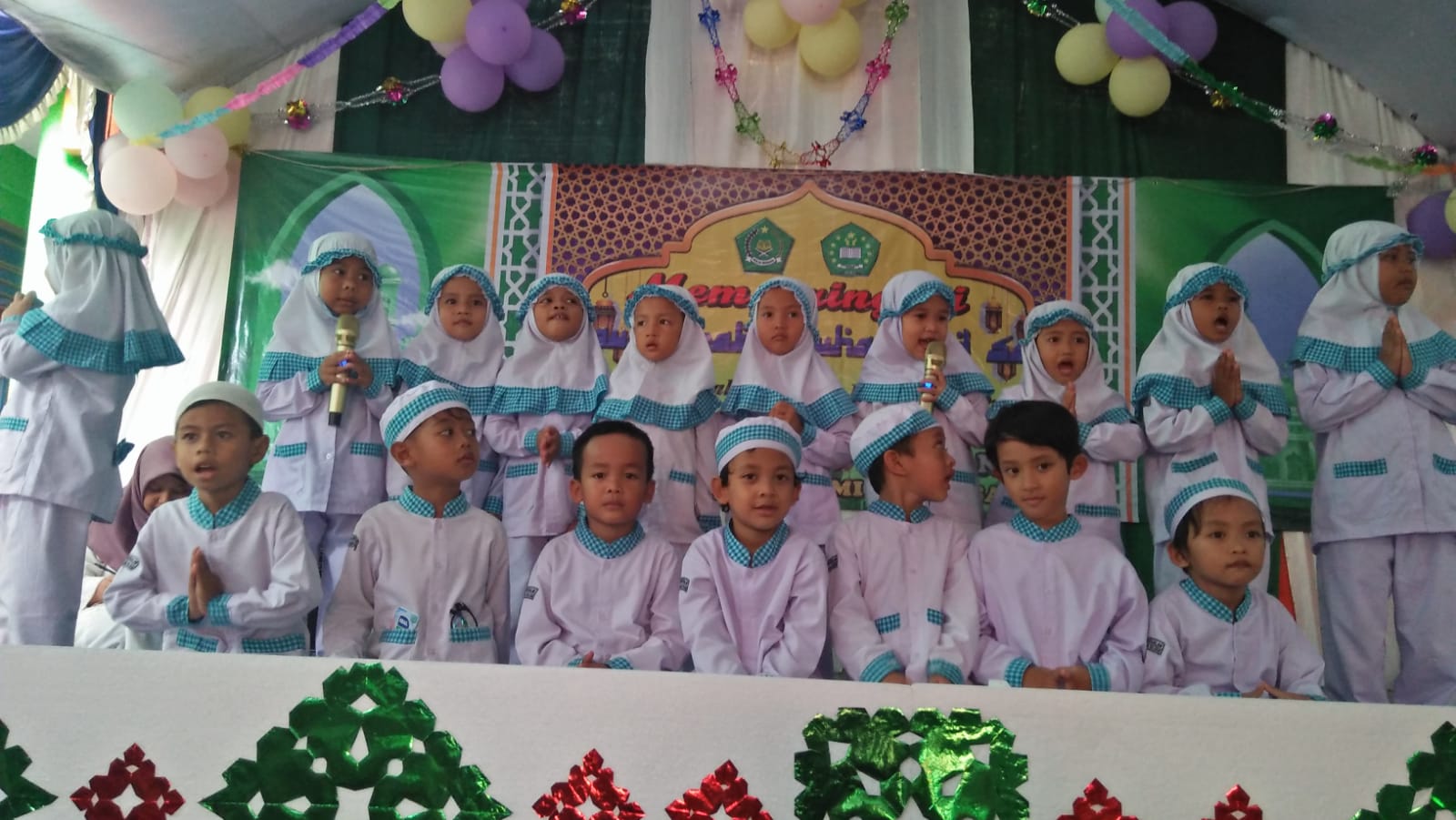 Biasanya peringatan maulid tersebut memang dirayakan serentak, baru kali ini setelah pandemi covid 19, peringatan Maulid diadakan lagi. Para siswa dan siswi dengan sangat antusias menampilkan hafalan Asmaul Husna, berjanji, marawis, ceramah dari Dai cilik, membacakan sholawat, pentas kreasi seni serta membacakan dua kalimat syahadat yang dibacakan oleh siswa-siswi RA Darussalam. (Fen)