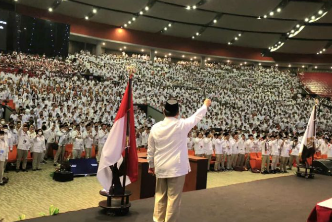 “Dengan ini saya menyatakan bahwa dengan penuh rasa tanggung jawab saya menerima permohonan saudara untuk bersedia dicalonkan sebagai calon presiden Republik Indonesia,” kata Prabowo di hadapan ribuan kader.
