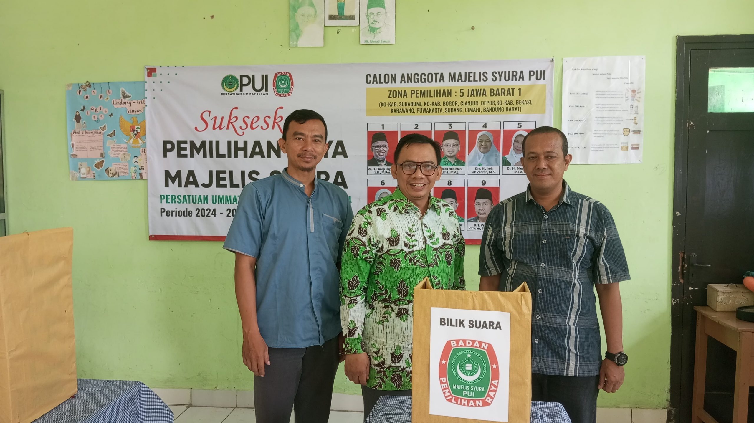 Pemilihan Raya Majelis Syuro ini berlangsung di Sekolah PUI Bondongan, Bogor Selatan. Dihadiri oleh Jajaran pengurus tingkat Kota, Tingkat Kecamatan, Organisasi Otonom dan Karyawan Sekolah PUI.