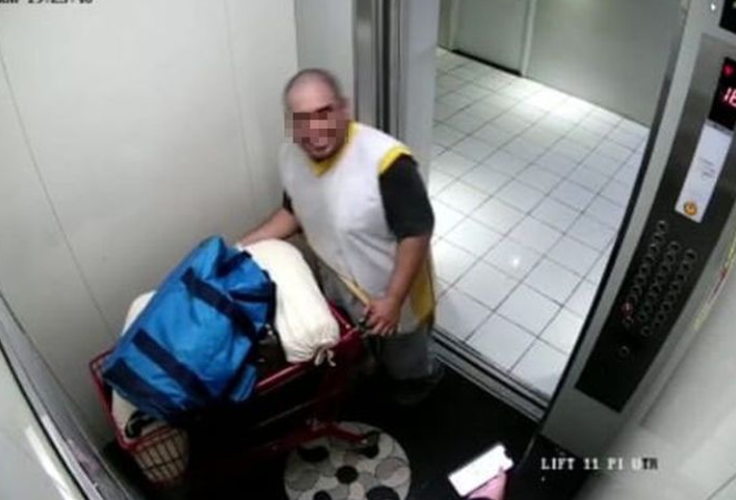 Pelaku terlihat berjalan dari lorong lantai 18 sambil mendorong troli. Pelaku masuk ke dalam lift sambil mendorong troli berisi sejumlah barang dan satu di antaranya terdapat kantong berisi jasad korban AYR.