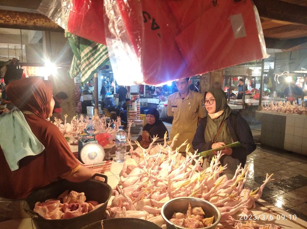 Tim Satgas Pangan Polbangtan Bogor didampingi Tim Dinas Perdagangan Kota Bekasi dan Kepala Unit Pasar Pondok Gede berkeliling menemui pedagang pasar yang menjual komoditas pangan strategis.