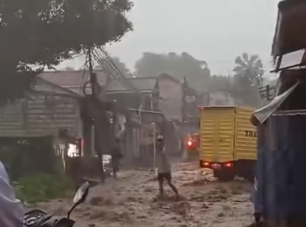 BOGOR - WARTA BOGOR - Hujan deras menyebabkan saluran drainase tersumbat material proyek pembangunan gedung di wilayah Tamansari, Bogor, Jawa…